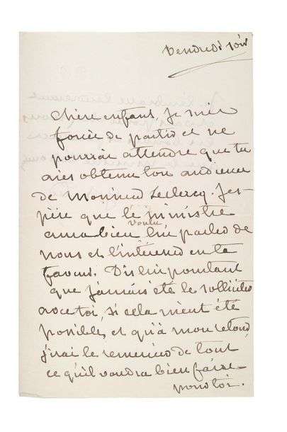 Lettre autographe signée adressée à son fils Maurice