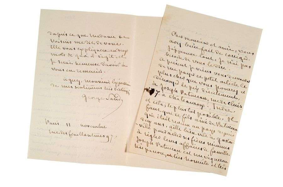 Deux lettres autographes signées 1. Lettre autographe signée «George Sand», adressée à «Monsieur».
