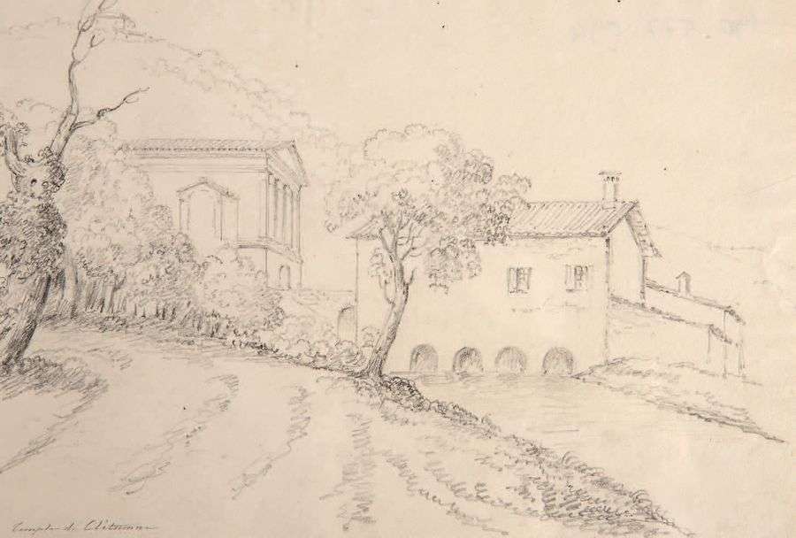 Les différentes vues, de côté et de face, du temple de Clitumne, esquissées par le duc de Luynes et par Joseph-Frédéric Debacq montrent l'intérêt exacerbé au XIXe siècle pour les réalisations antiques. La vue frontale réalisée par Debacq cherche à atteindre l'objectivité d'une étude architecturale et archéologique.