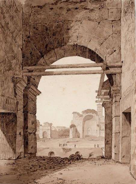 Temple de Vénus à Rome, et Arc de Titus vus du 1er étage du Colisée