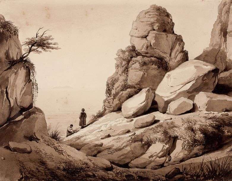 Lavis brun sur traits à la pierre noire 26,5 x 39 cm