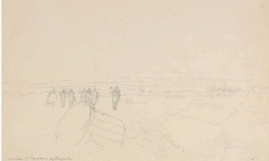 B. DEUX DESSINS SUR LE MÊME MONTAGE JOSEPH FRÉDÉRIC DEBACQ Vue de Torre di Mare - Metaponte