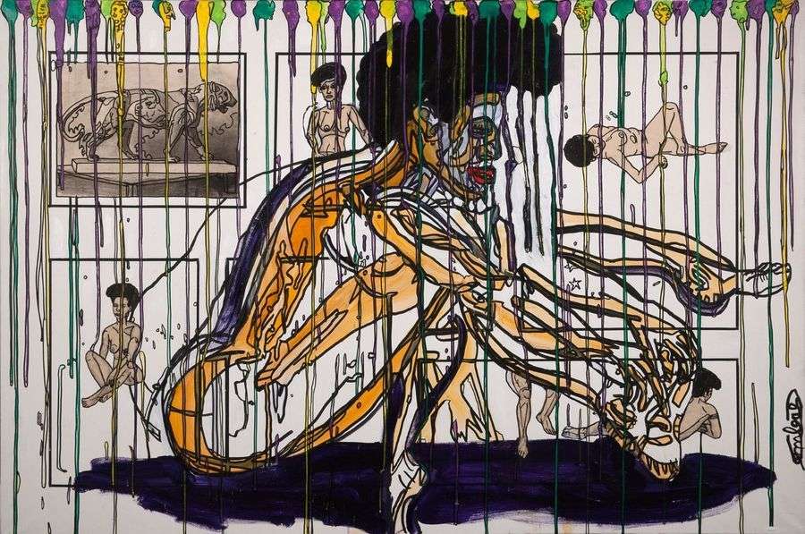 Robert Combas, né en 1957 à Lyon est un peintre, sculpteur, illustrateur et musicien, sa passion pour la musique rock fonde véritable son rapport à la