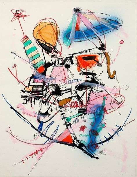 Sérigraphie réhaussée sur papier, signée et datée en bas à droite 65,5 x 50 cm à vue - 25 ¾ x 19 ¾ in.