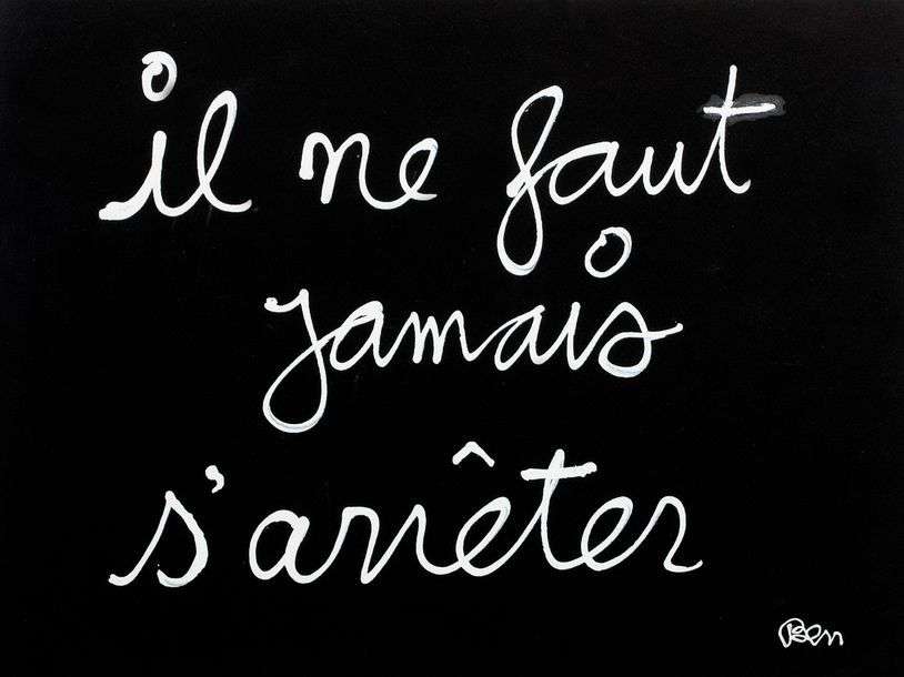 notamment ses « écritures », déclinées sous diverses formes comme dans Il ne faut jamais s’arrêter (2013).