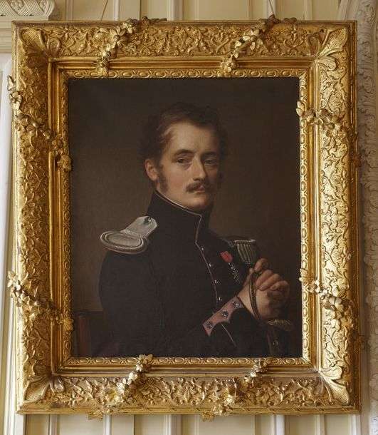 Portrait d'officier à la moustache et portrait de femme à l'étole rouge
