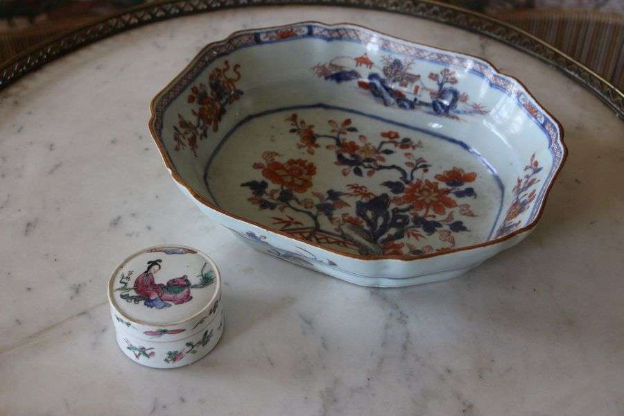 On joint une boite circulaire en porcelaine de Canton