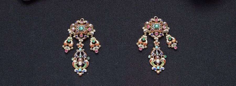 en or jaune 18k ajouré, émaillé et serti de pierre de couleur