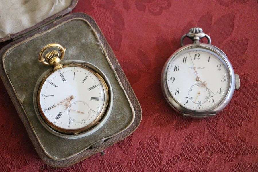 Ensemble comprenant une montre de gousset et un chronomètre en or jaune 18