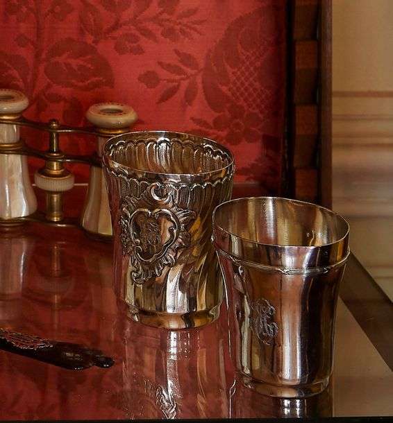 On joint deux timbales en argent
