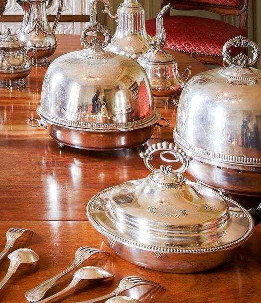 un samovar, quatre verrières, un bouillon couvert, trois chauffes plats, un surtout et divers