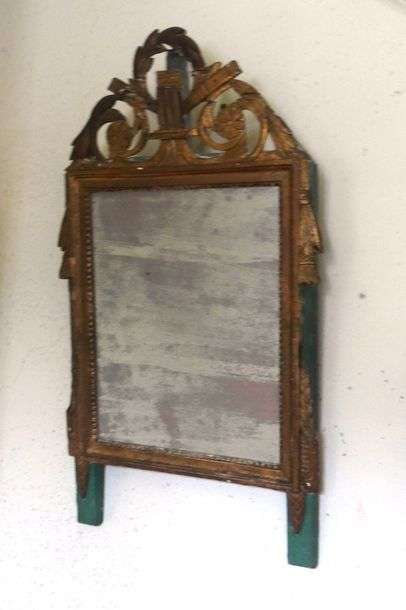 Miroir en bois doré sculpté laqué vert avec un fronton ajouré