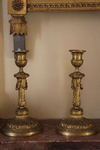 Paire de bougeoirs en bronze doré