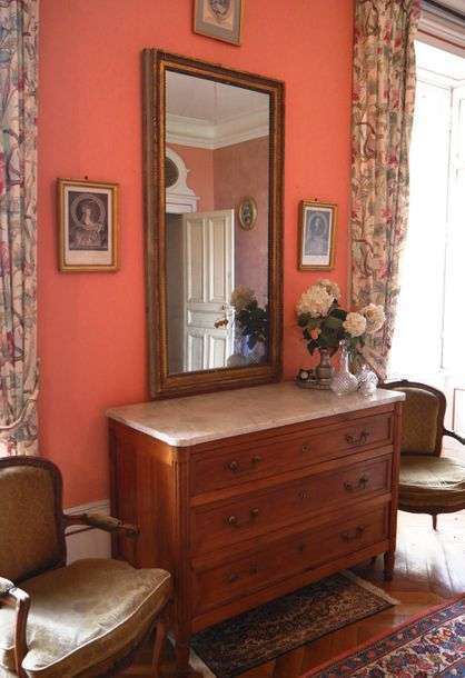 en bois naturel ouvrant à trois tiroirs sur trois rangs avec les montants cannelés