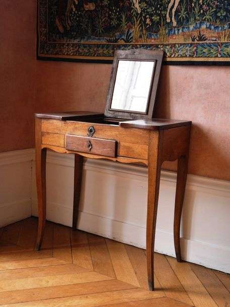 en bois naturel ouvrant à un abattant et un tiroir en ceinture