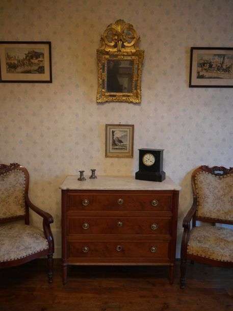 ouvrant à 3 tiroirs sur 3 rangs, les montants cannelés et fuselés, marbre blanc