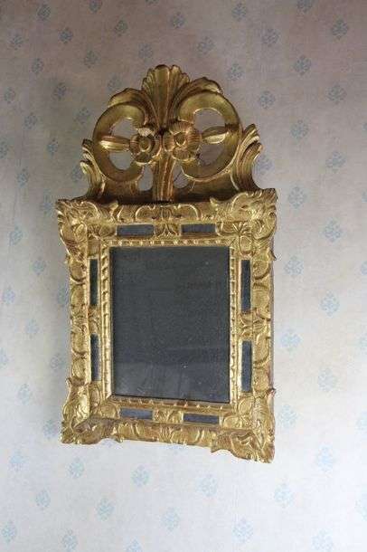 en bois doré et sculpté le fronton à décor de fleurs