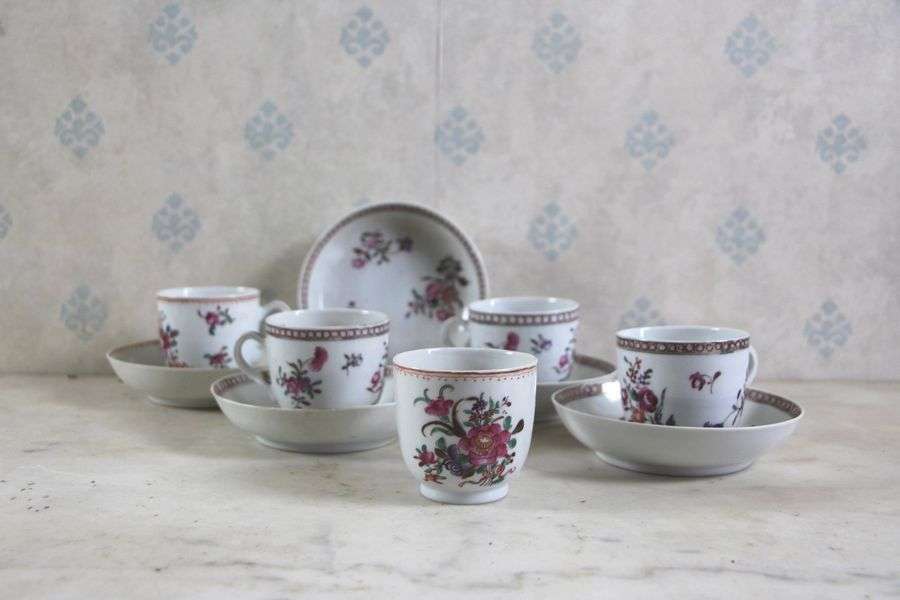 Suite de cinq tasses et sous-tasses
