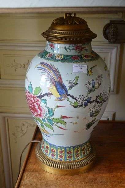 à décor dans le goût de la famille verte, la monture en bronze