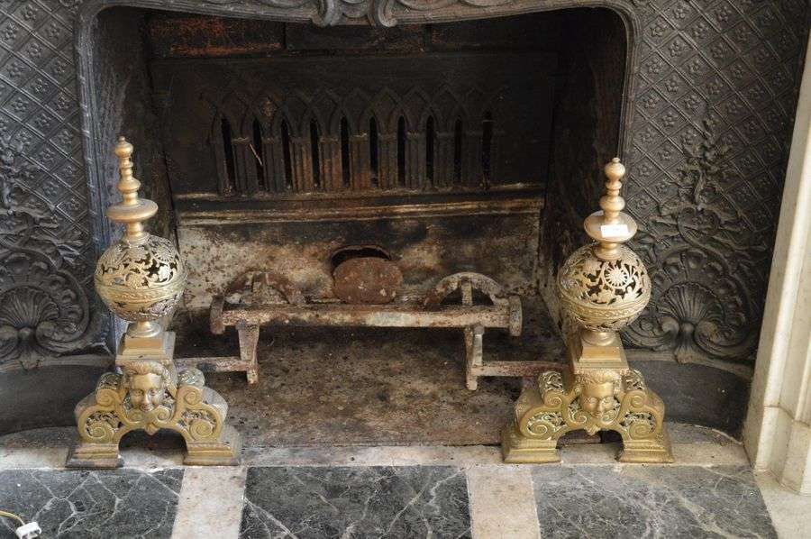 en bronze doré formant des sphères ajourées et appliqués de mascarons sur la base.