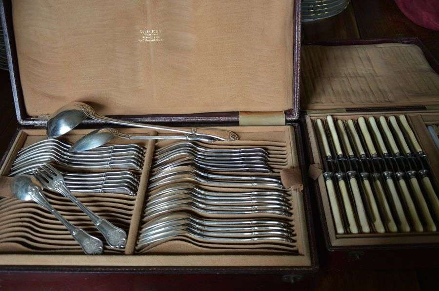 Partie de ménagère dans un écrin en maroquin bordeaux comprenant :