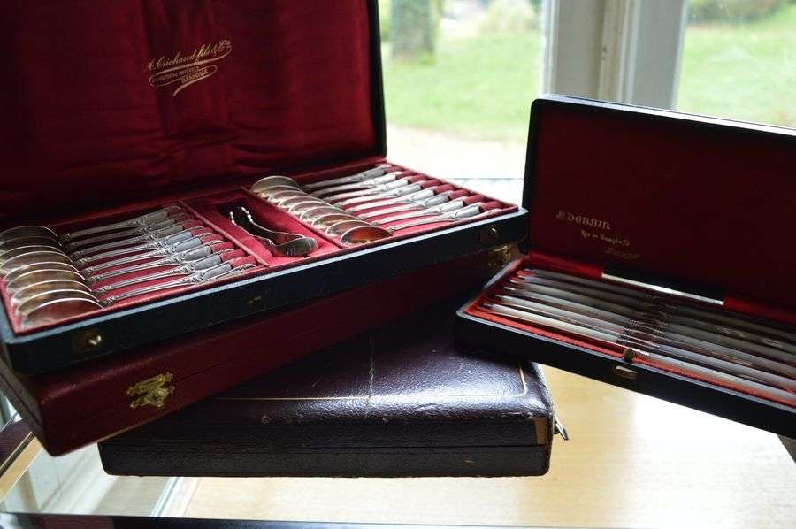 Série de 5 écrins comprenant :Des couteaux,Des petites cuillères,Un lot de