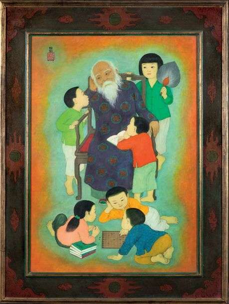 Avec ses couleurs chaudes et ses échanges de regards plein de tendresse, cette oeuvre est un parfait exemple du talent de Mai Thu. Le peintre vietnamien Mai Thu, né en 1906 et décédé en 1980 fait partie de la première promotion d’élèves de l’Ecole des Beaux-Arts d’Hanoï, fondée en 1925, où il a suivi les enseignements de Victor Tardieu aux côtés de Le Pho, Vu Cao Dam ou Le Van De.