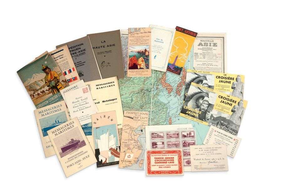 LA CROISIÈRE JAUNE Important lot de livres, cartes, brochures et invitations ayant appartenu à Jean