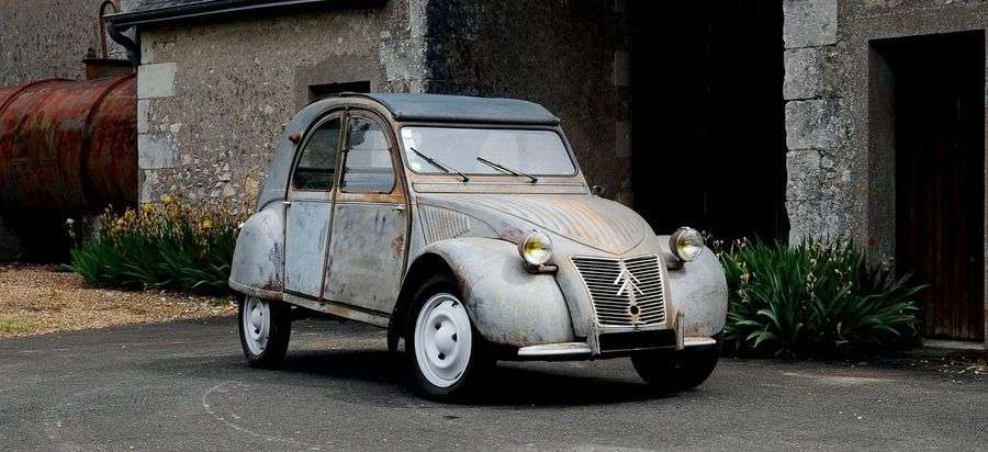 La voiture ici présentée est une authentique sortie de grange, avec tout le charme qui va avec. Par l’intermédiaire d’un ami, le propriétaire actuel découvre cette charmante 2 CV alors endormie dans une grange au fond de la campagne tourangelle. Conservée au sec et bien à l’abri, elle dormait alors depuis 1979. De 1955 à 1964 elle appartenait à un particulier de la région d’Orleans. Puis de 1964 à 1979 à un mécanicien de machines agricoles monsieur Besnard. Soigneux de sa machine, un émouvant petit carnet de bord fut retrouvé dans la voiture, avec toutes les annotations d’entretien ou de changement de pièces de rechange. Elle est exhumée en 2015 et quitte le petit village d’Orbigny près de Tours pour être remise en état par monsieur