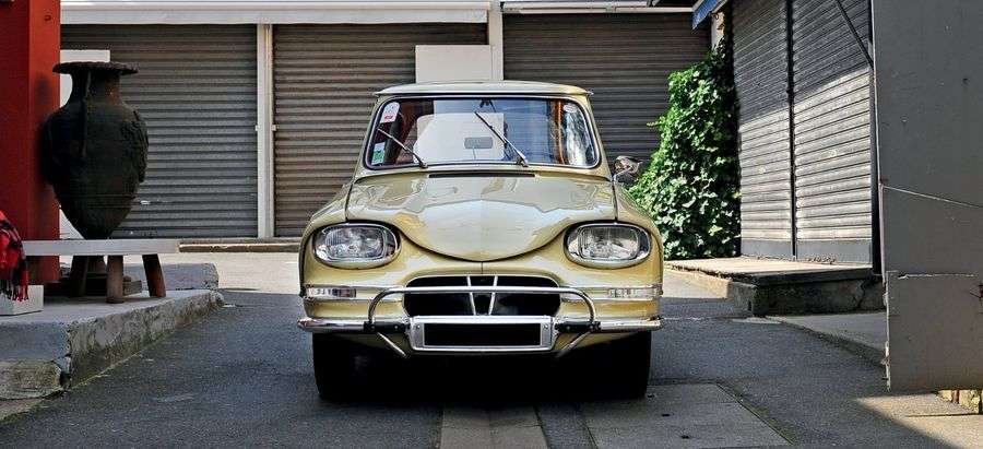 La première Ami 6 vient au monde en avril 1961 afin de combler le vide entre la 2 CV et la DS 19. Elle apparaît plutôt comme une super 2 CV. Son châssis provient d’ailleurs directement de la 2 CV, dont elle reprend la suspension et le moteur bicylindre à plat refroidi par air mais poussé à 602 cm3, pour 3 cv fiscaux. L’originalité de l’Ami 6, dont le nom est déjà un jeu de mots, la Missis, s’exprime dans son dessin signé Flaminio Bertoni, à la lunette arrière inversée permettant une habitabilité et un confort à bord unique en son temps. Le modèle que nous vous présentons est une berline de 1963. Elle est de couleur Jaune Golf référence AC 312 et équipée de l’intérieur feuille de Houx rouge. Elle fut vendue neuve en Avril 1963 en Hollande où elle séjourna avant qu’un célèbre négociant en voitures anciennes ne la ramène en Bourgogne. C’est alors que le collectionneur, Monsieur R en fait l’acquisition et s’attache à sa restauration en 2011. La carrosserie était un peu fatiguée et présentait quelques bosses mais la base était très saine. La restauration a été confiée à un concessionnaire Citroën de la région parisienne qui s’attacha à refaire soigneusement la peinture, dans cette teinte délicieusement sixties. L’intérieur a été refait à neuf et conforme à l’origine. La mécanique ne nécessitait pas de grands travaux et fut révisée. Elle fonctionne aujourd’hui à merveille et permet à la petite Citroën d’atteindre les 110 km/h sans faiblir. Le maître-cylindre est neuf ainsi que la batterie 6 volt. Le contrôle technique est à jour et valide. Dernièrement cette charmante AMI 6 à été sélectionnée par la marque Citroën pour les 100 ans de l’exposition « Born Paris XV », en juin dernier, où elle a rencontré un franc succès. Les ami 6 berline, bien que fabriquées en très grande
