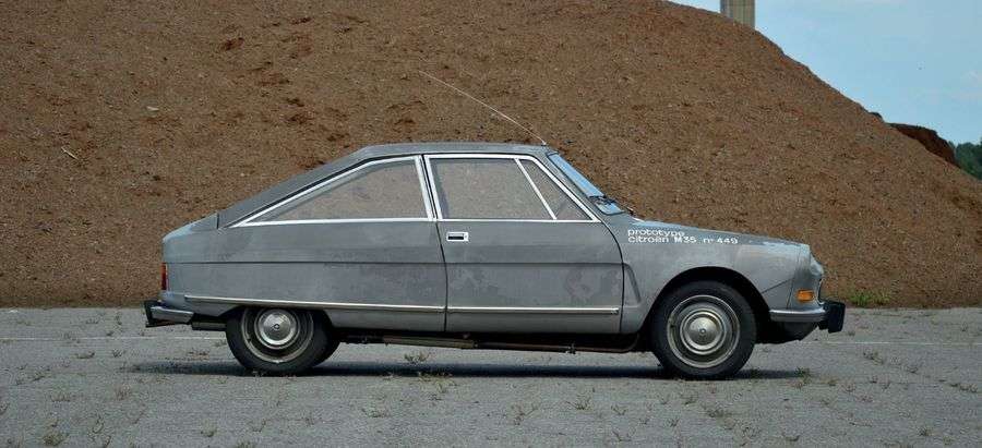 Ala fin des années 60, Citroën en quête de modernité s’intéresse au moteur rotatif créé par Félix Wankel. Elle entame alors une collaboration avec la société NSU. Un premier contrat dit « Comoto » accorde à Citroën la licence d’exploitation du moteur Wankel. Suite à cela la société Comotor est créée en mai 1967 et bénéficiera d’une usine en Allemagne qui aura pour rôle de fabriquer le moteur rotatif à grande échelle. Pour tester et améliorer cette technologie, le directeur des relations publiques Jacques Wolgensinger propose de produire une petite série de véhicules expérimentaux et d’en confier le volant à des clients, qui seront chargés de transmettre leurs expériences au Bureau d’Etudes. Fabriqué par Heuliez, ce prototype prend la forme d’un coupé 2+2 influencé de la silhouette de l’Ami 8. A l’intérieur, la sellerie est inspirée de celle de la SM et le tableau de bord est très proche de celui de l’Ami 8. La M 35 adopte un système de suspension hydraulique et des freins à disque à l’avant. La boite de vitesse manuelle à 4 rapports est associée à un moteur Wankel de 995 cm3 développant 49ch. Toutes les M35 adoptent une couleur gris métal ainsi que la mention « Prototype Citroën M35 » suivi de leur numéro respectif sur les ailes avant.