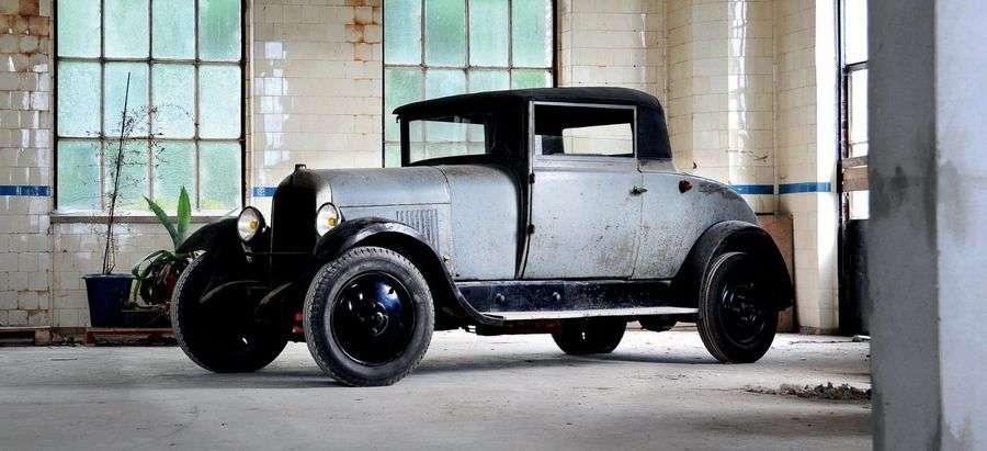 Au Salon de Paris 1926, apparaît la B14, celle qui devient bientôt « l’increvable B14 ». Quatre mois plus tard, devenue B14F, elle est la première voiture de grande série équipée du servofrein Westinghouse sur les quatre roues. A partir du Salon 1927, la B14G succède à la B14F. Elle évolue fort peu sur le plan mécanique, mais elle s’améliore beaucoup esthétiquement. La B14G 1927 se distingue par son pavillon bombé aux angles arrondis et par un nouveau choix de couleurs au catalogue. Le véhicule ici présenté est une sympathique B14 F de 1926. Celle-ci se présente avec une carrosserie intéressante de Coupé deux places, appelée à l’époque au catalogue « cabriolet non décapotable 2 places ». Cette B14 se présente à nous en état d’origine jamais restaurée. Il semblerait que la carrosserie ait été modifiée pendant la guerre. Cette auto est complète avec son moteur d’origine N° 9828 ainsi qu’un spider arrière avec banquette. L’intérieur est d’époque et complet, et la base général est très saine. Cette B14 se destine aujourd’hui à un amateur qui aura le courage de la restaurer en gardant ce parfum d’authenticité inimitable.