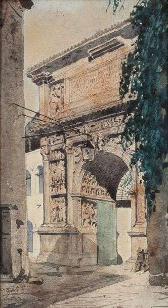 Trois dessins sur le même montage, aquarelle sur traits de crayon noir