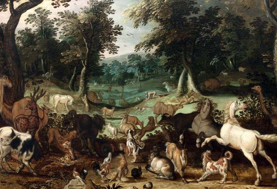 Ce sujet tiré de l'Ancien Testament est aussi un prétexte pour montrer un grand paysage peuplé d'animaux tels que les représentations du Jardin d'Eden, qui sont pléthore à l'époque de Gillis d'Hondecoeter.