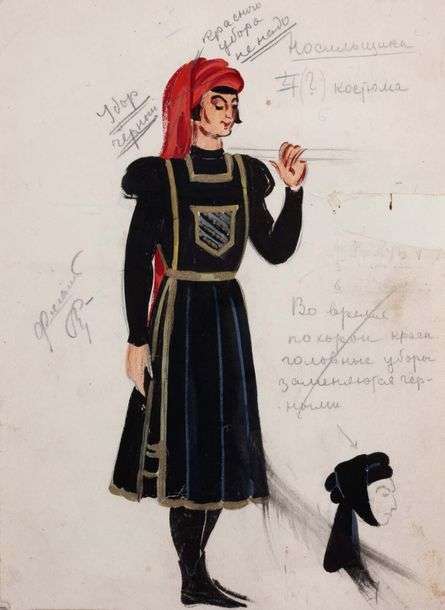 A. Ami de Tibalt Gouache et encre sur traits de crayon et sanguine et rehauts d'or sur papier Annotations et cachet de collection au dos 30,5 x 21,5 cm
