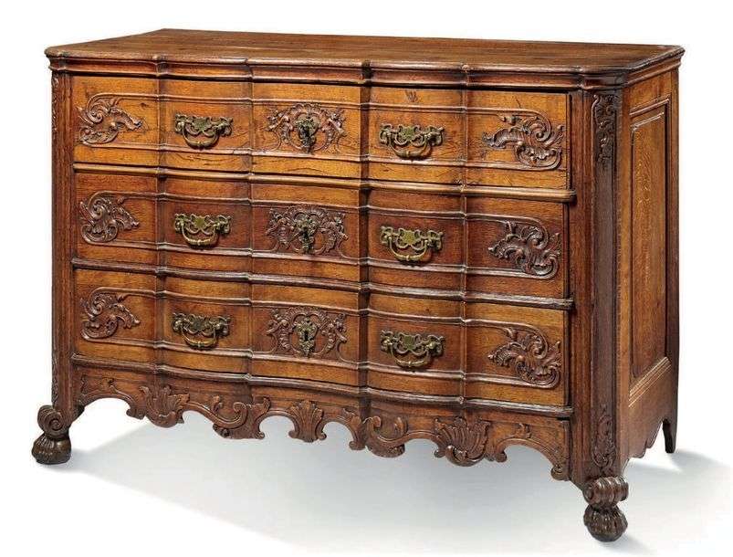 en chêne mouluré et sculpté ouvrant à trois rangs sur trois rangs à décor rocaille.