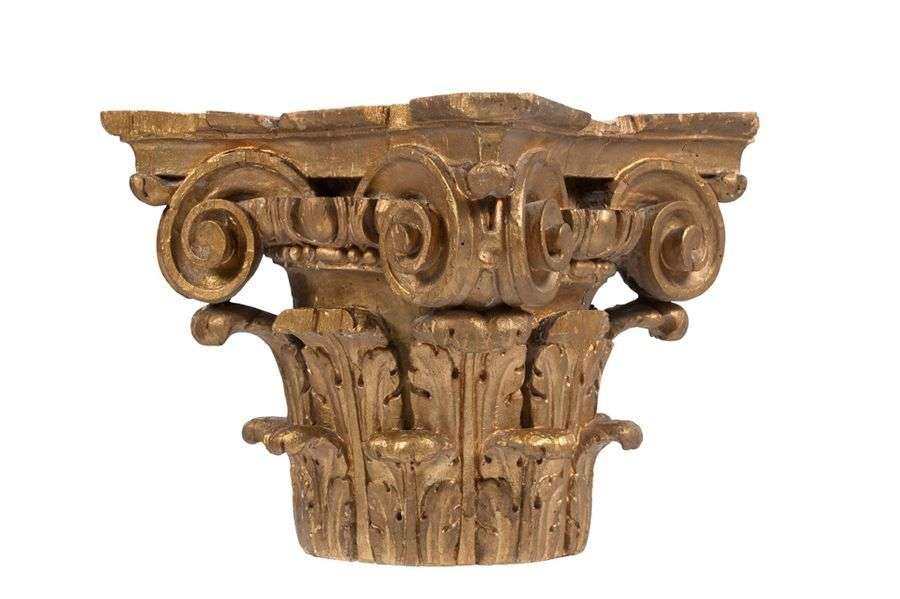 PETIT CHAPITEAU CORINTHIEN DÉCORATIF en bois sculpté doré