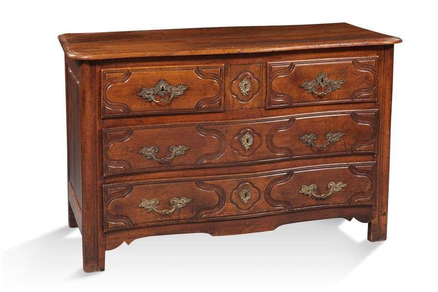 COMMODE en bois naturel mouluré ouvrant en façade par quatre tiroirs sur trois rangs Ile de France, début du XVIIIe siècle
