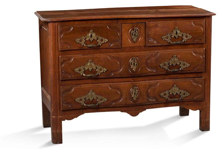COMMODE en bois naturel mouluré et sculpté ouvrant en façade par quatre ti