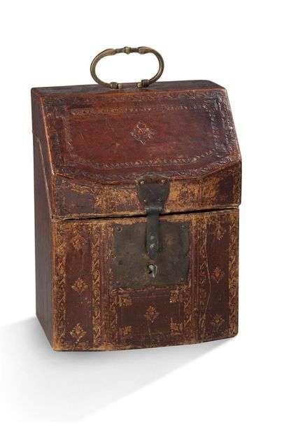 PETIT COFFRET À LETTRES à âme en bois recouvert de cuir doré aux petits fers. XVIIIe siècle