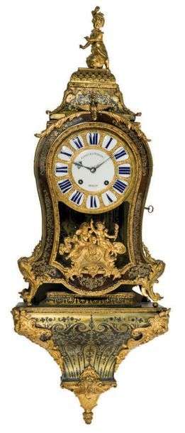 IMPORTANT CARTEL ET SON CUL DE LAMPE de forme violonnée en marqueterie Bou