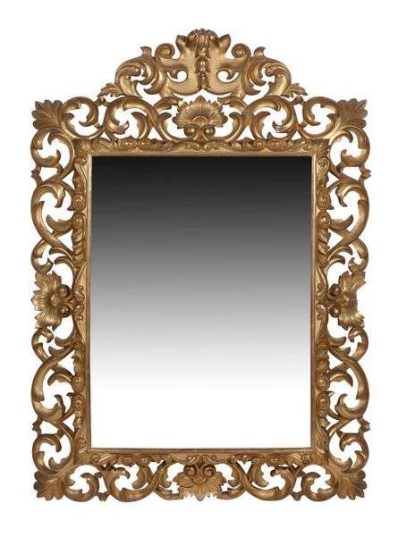MIROIR en bois sculpté doré à décor ajouré de volutes et entrelacs XIXe siècle