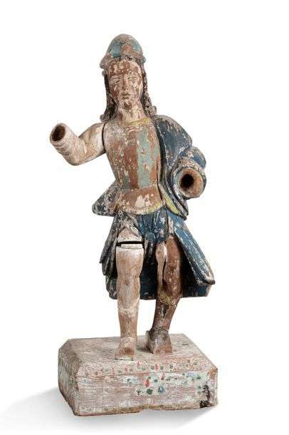 Ø * STATUE en bois polychrome représentant un guerrier Travail d'Extrême-O