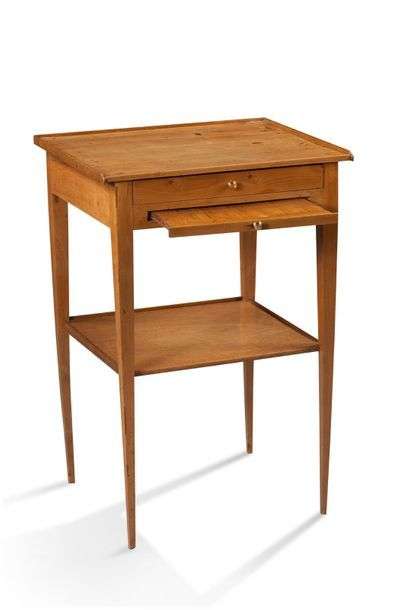 Ø PETIT CHEVET en bois naturel ouvrant par un tiroir et une tirette. Il repose sur quatre pieds gaine. XIXe siècle