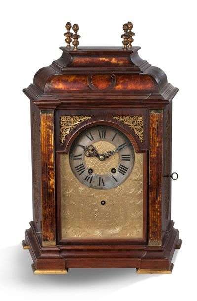 CARTEL en marqueterie de bois divers façon écaille et plaques de laiton ci