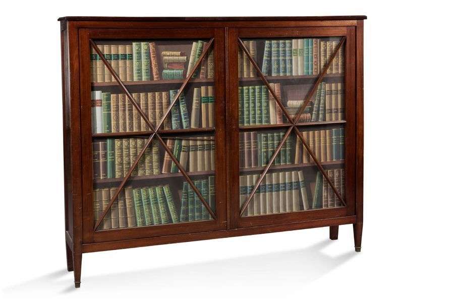 ø IMPORTANTE BIBLIOTHÈQUE en acajou ouvrant par deux portes vitrées XIXe s