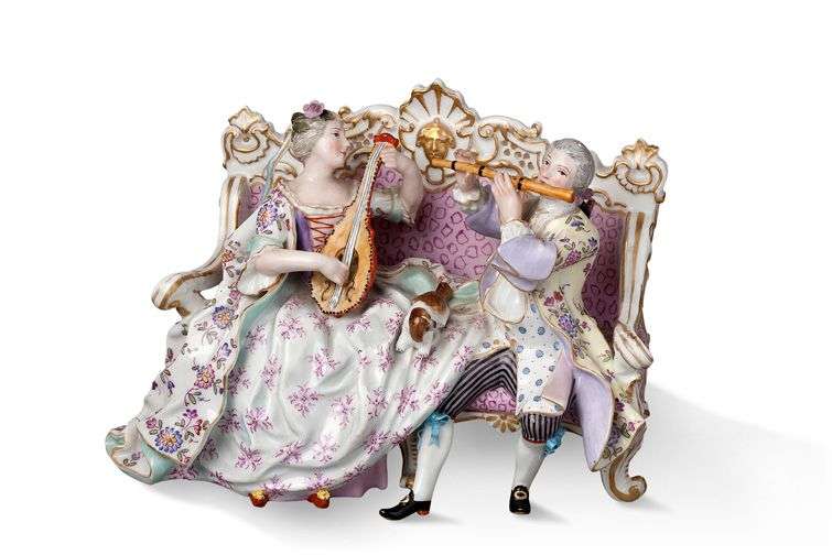 GROUPE en porcelaine blanc, or et polychrome de MEISSEN représentant un gr