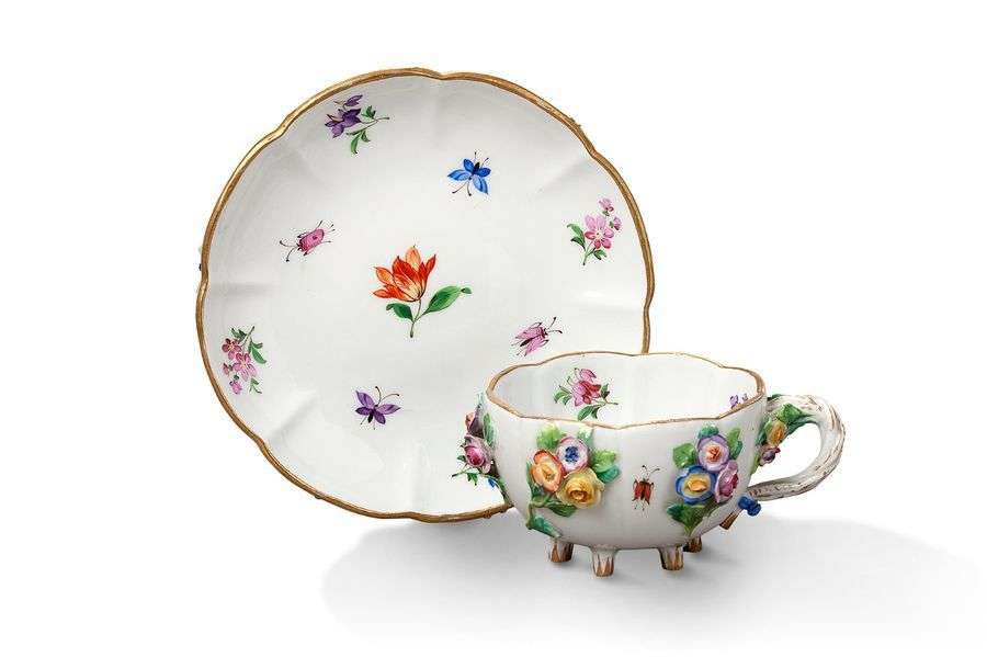 ø TASSE ET SOUS-TASSE en porcelaine à décor de bouquets de fleurs