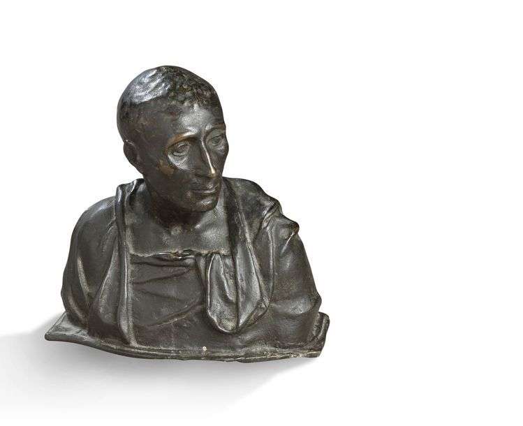 BUSTE en bronze à patine brune représentant Niccolò da Uzzano d'après Donatello. XIXe siècle