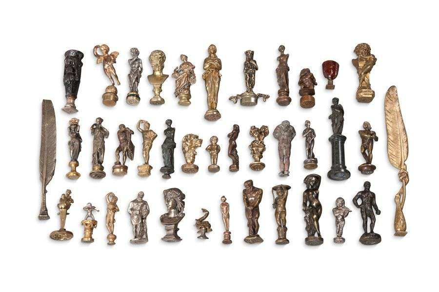 ø COLLECTION DE CACHETS en bronze ciselé patiné et doré sur le thème mythologique XIXe siècle 36 cachets